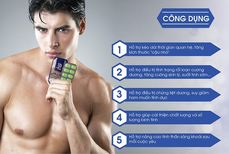 Tăng cường sức khỏe nam giới, kích thích sản sinh nội tiết tố nam, làm cho cậu nhỏ cứng cáp hơn